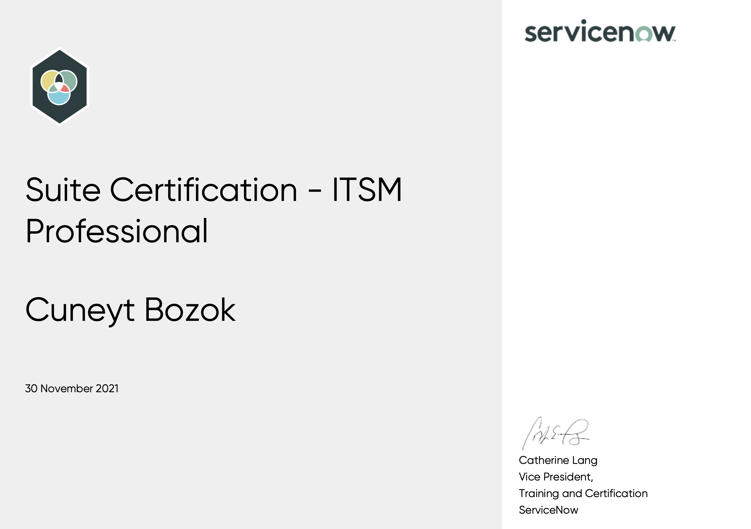 • Suite Certification - ITSM Professional, ServiceNow