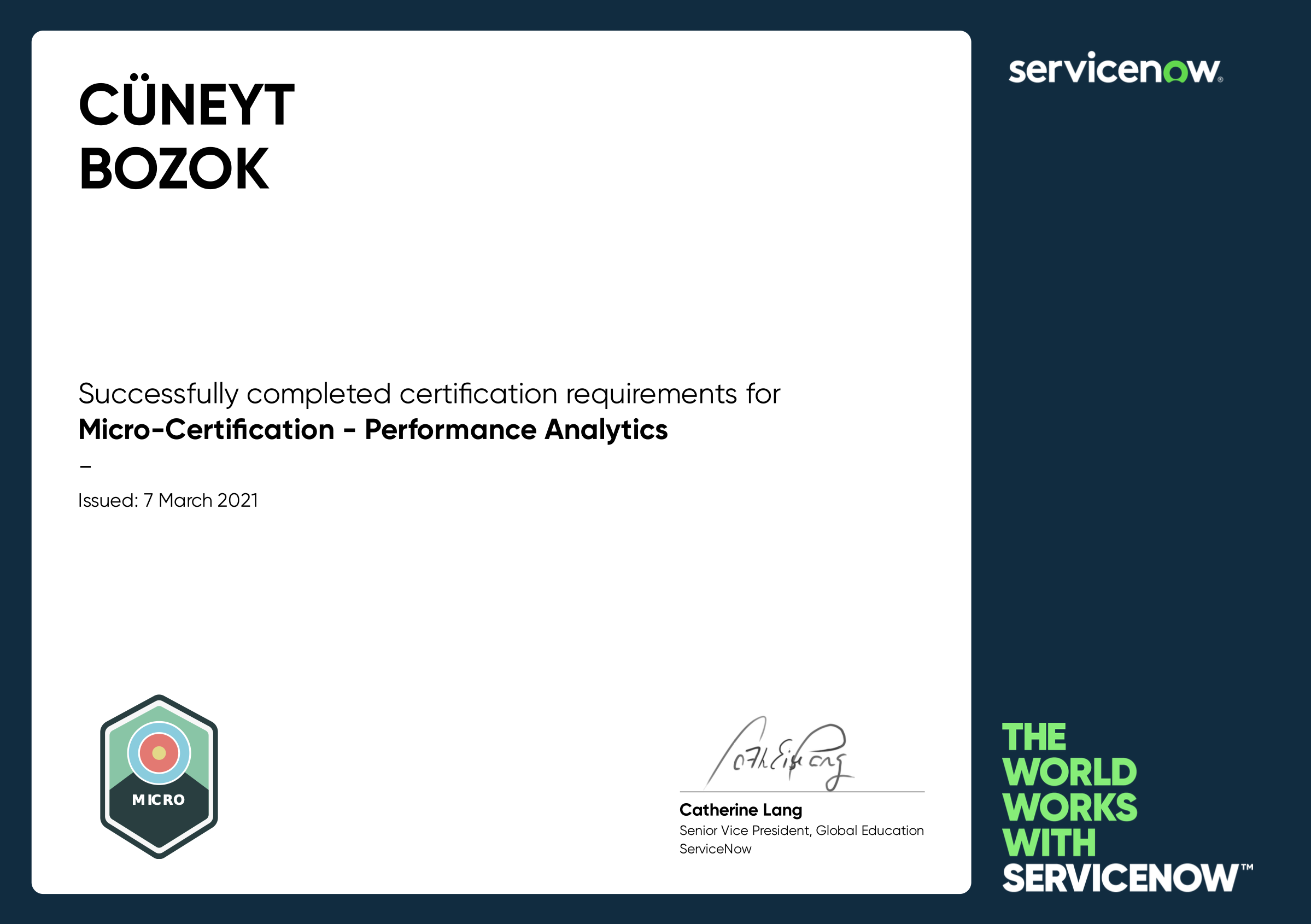 • Micro-Certification - Performance Analytics, ServiceNow