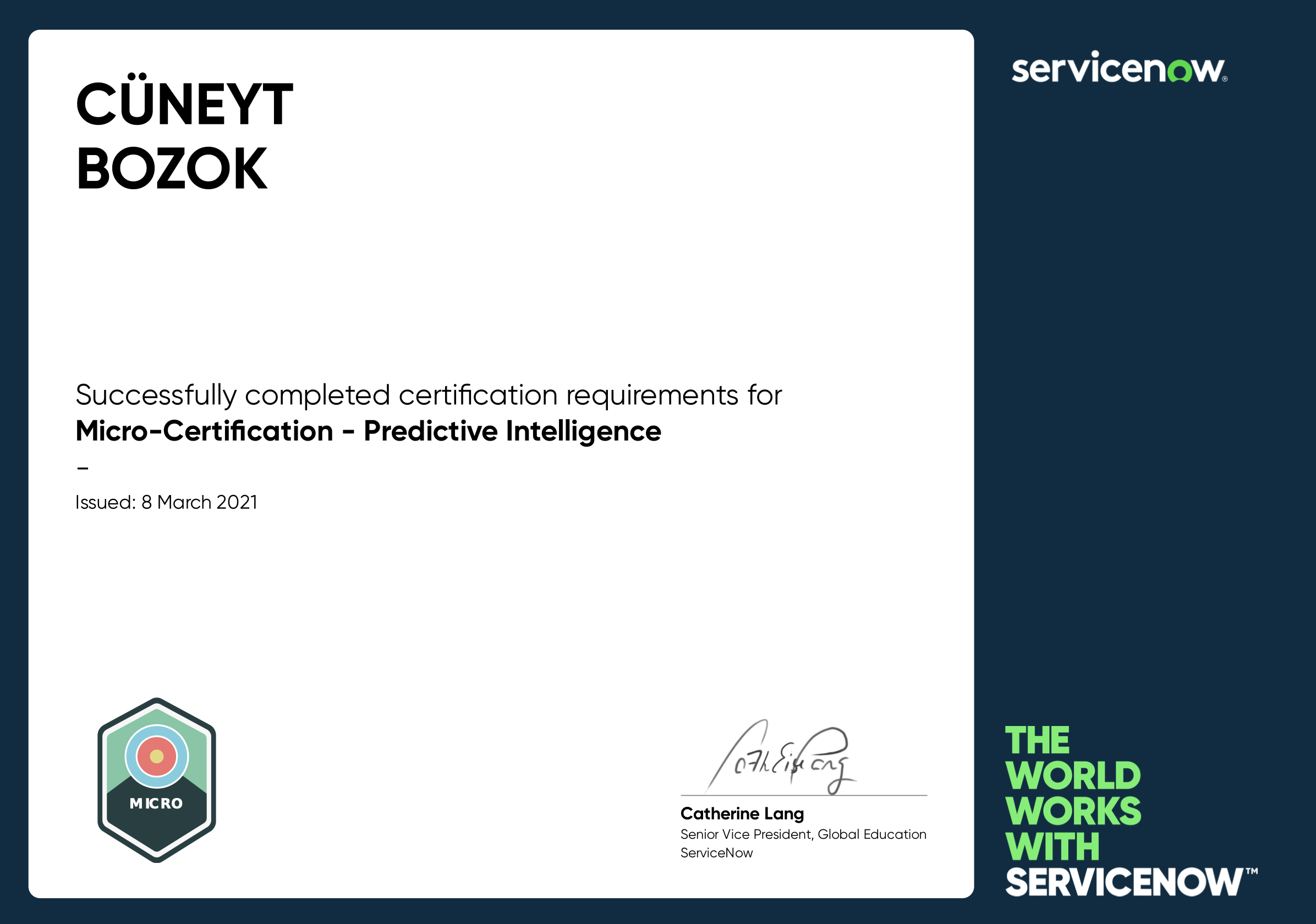 • Micro-Certification - Predictive Intelligence, ServiceNow